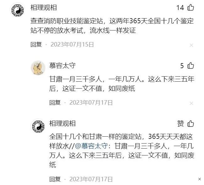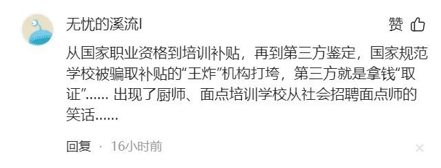 近年来,网上已有自媒体关注到垄断利益集团主导下的“骗补”现象,并发文抨击谴责。在今日头条文章《「馅饼」变「陷阱」:职业技能假培训要不得》与《从国家职业资格鉴定到职业技能等级认证这三十年利弊分析》的评论区内,网友们纷纷分享了自己身边真实发生的“骗补”案例,表达了对某些官办发证机构滥发“山寨证书”、扰乱职业技能鉴定市场的强烈谴责。